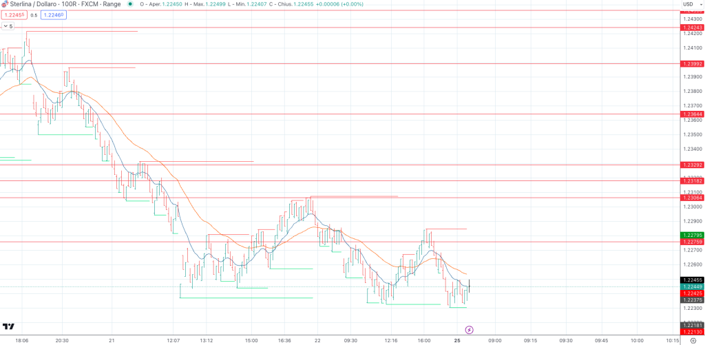 Al momento, il livello chiave di 1,2275-1,2276 è stato sfiorato più volte sia al rialzo che al ribasso. Tuttavia, il supporto situato intorno a 1,22364 sta dimostrando una notevole resistenza. Pertanto, l’evoluzione futura del mercato rimane incerta, considerando anche la mancanza di notizie rilevanti in arrivo, a differenza della settimana precedente.