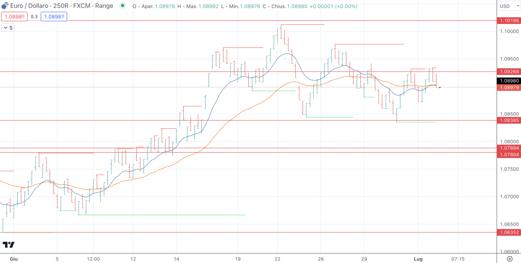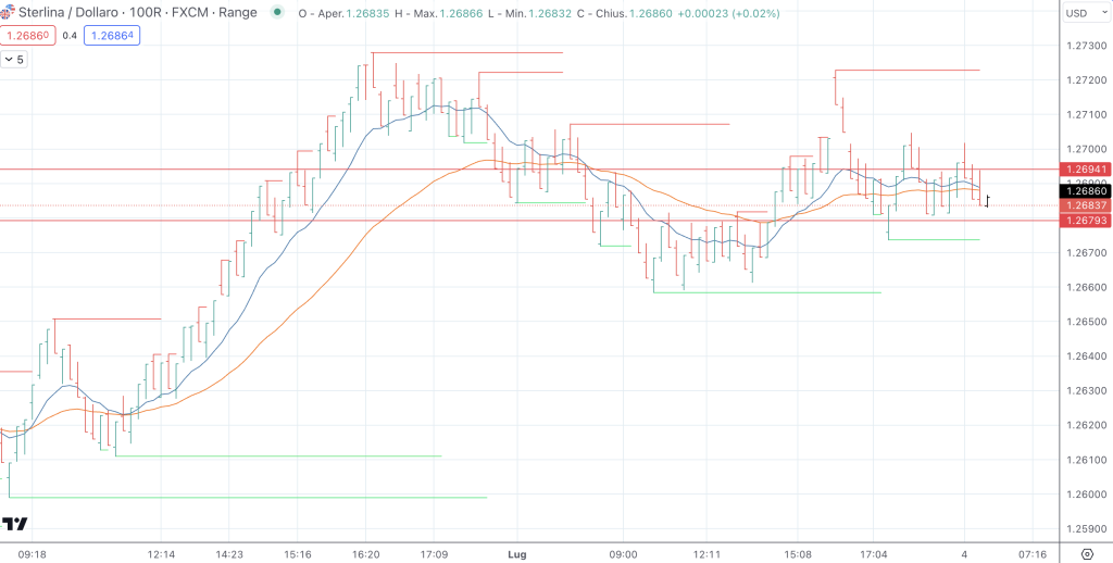 Buongiorno e buon martedì mattina cari amici e care amiche di Forex Trading Pratico. Partiamo con la consueta analisi del mercato forex del 04/07/2023 su EURUSD e GBPUSD con le range bars.