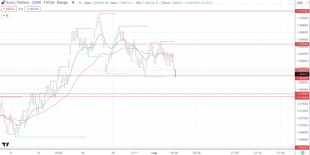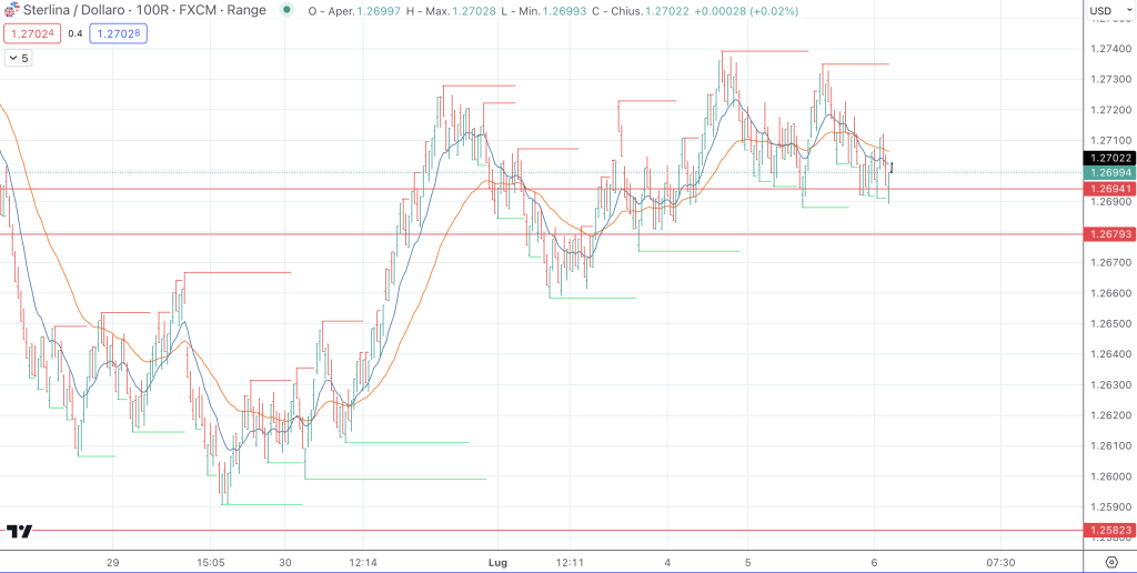 Buongiorno e buon giovedì mattina cari amici e care amiche di Forex Trading Pratico. Partiamo con la consueta analisi del mercato forex del 06/07/2023 su EURUSD e GBPUSD con le range bars.