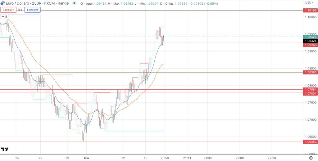 Buongiorno e buon lunedì mattina cari amici e care amiche di Forex Trading Pratico. Partiamo con la consueta analisi del mercato forex del 19/06/2023 su EURUSD e GBPUSD con le range bars.