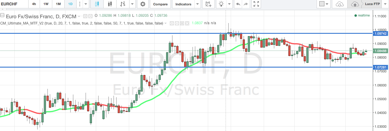 Passiamo ad un punto di vista grafico per quanto riguarda il cambio euro franco svizzero, ed andremo ad analizzare i tre time frame di riferimento.