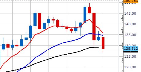 Su questo time frame possiamo notare come il prezzo, lo scorso mese, abbia creato una bellissima pin bar. Per chi investe su questo time frame (credetemi che i grandi investitori lo fanno), a quest’ora stava e sta già prendendo i primi guadagni. La rottura del supporto a 127,81 sarà fondamentale per il proseguo di questo cross.