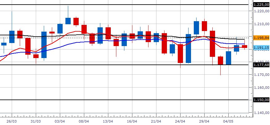 Su questo time frame si nota molto bene quello che abbiamo detto nel time frame mensile, dal 23 marzo il prezzo è congestionato tra 1225,00 e 1177,68. Guardando questo grafico del gold possiamo vedere come questa materia prima sia in attesa di qualche notizia macroeconomica importante, come l’effettivo rialzo dei tassi di interesse da parte della FED.