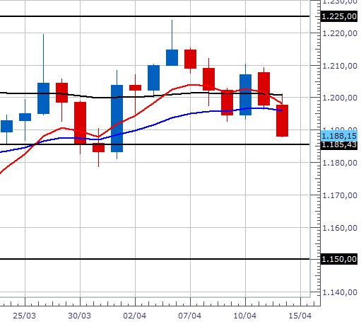 L’RSI sembra ben direzionato verso la zona di ipervenduto mentre il MACD insieme al suo istogramma si trova ancora al di sopra dello 0, ma anch’esso orientato al ribasso. Sarà interessante capire se il prezzo una volta raggiunto il supporto a 1185,00 rimbalzerà come ha fatto precedentemente (01/04/2015).