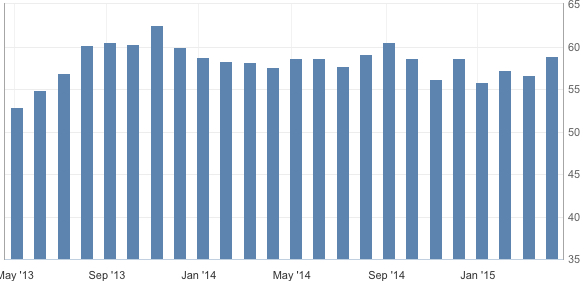 Il dato pubblicato è stato migliore delle attese degli analisti: 58,9 contro i 57 previsti.