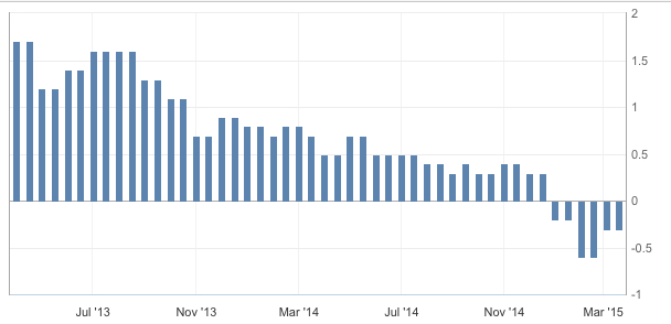 Come possiamo vedere dal grafico riportato qui sotto, il trend su questo indicatore è nettamente ribassista. Calo che è incominciato nell’aprile del 2013.
