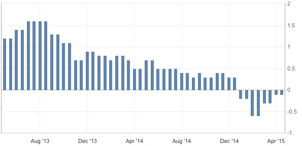 Negli ultimi 8 mesi l’inflazione si è trasformata in deflazione, ed è questo parametro che preoccupa i piani alti della BCE. Prima di questo cambiamento comunque, l’inflazione aveva avuto una discesa drastica.