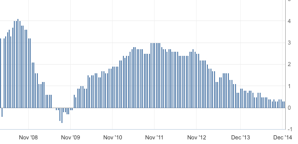 Molto probabilmente l’inflazione scenderà ulteriormente a gennaio e rimarrà estremamente bassa per tutto l’anno. Ci aspettiamo che la Bce annunci un programma di acquist che includa anche bond governativi