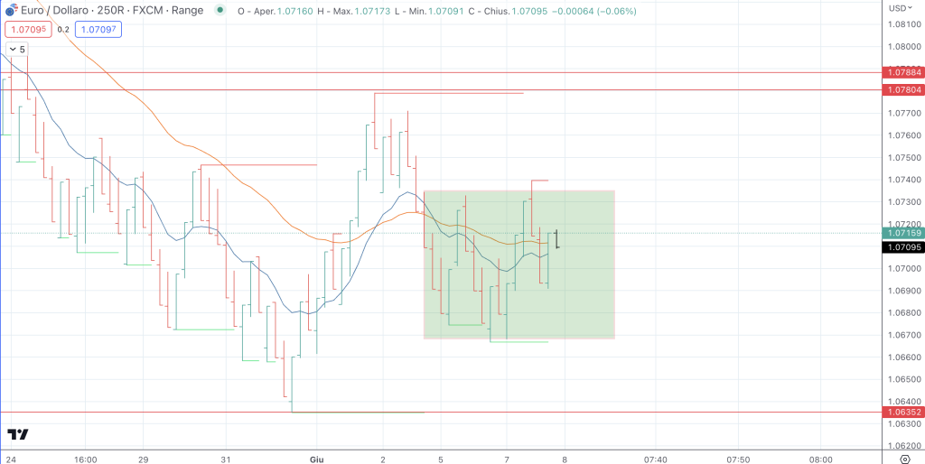 Buongiorno e buon mercoledì mattina cari amici e care amiche di Forex Trading Pratico. Partiamo con la consueta analisi del mercato forex dell’08/06/2023 su EUR/USD e GBP/USD con le range bars.