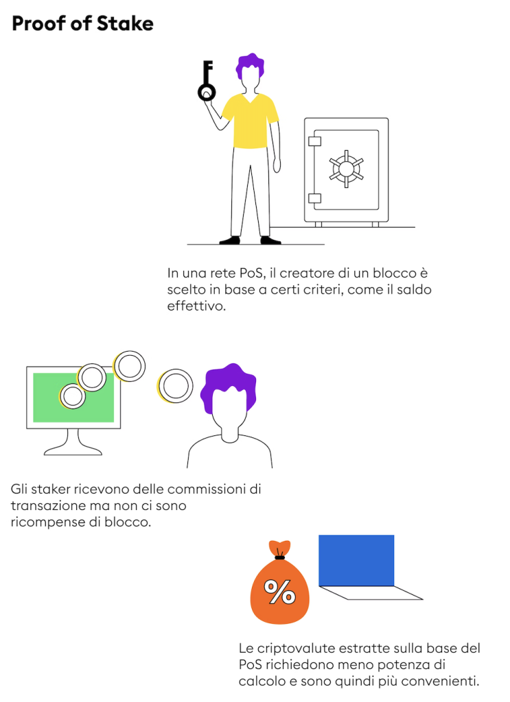 Con PoS, invece di competere e risolvere un enigma matematico, i validatori devono acquisire ETH e quindi bloccare il loro ETH in un contratto, altrimenti noto come staking.