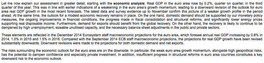 Analizziamo per “paragrafi” quello che viene detto dal presidente della BCE.