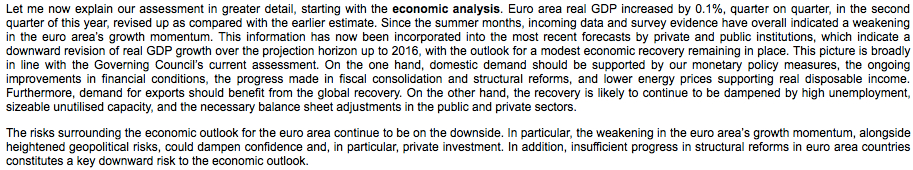 Analizziamo per “paragrafi” quello che viene detto dal presidente della BCE.