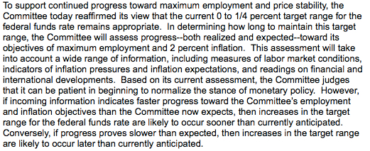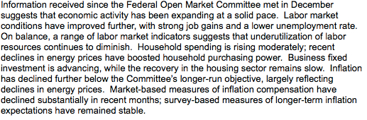 Rieccoci con il nostro appuntamento settimanale e mensile sugli statement delle principali banche centrali al mondo. Oggi andiamo a vedere cosa ha detto la Yellen ieri sera, ricordando che dallo scorso mese (statement di dicembre) gli investitori si aspettavano un aumento dei tassi di interesse.