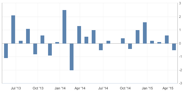 Il dato pubblicato è stato al di sotto delle attese degli analisti: -0,5% VS 0,4%.